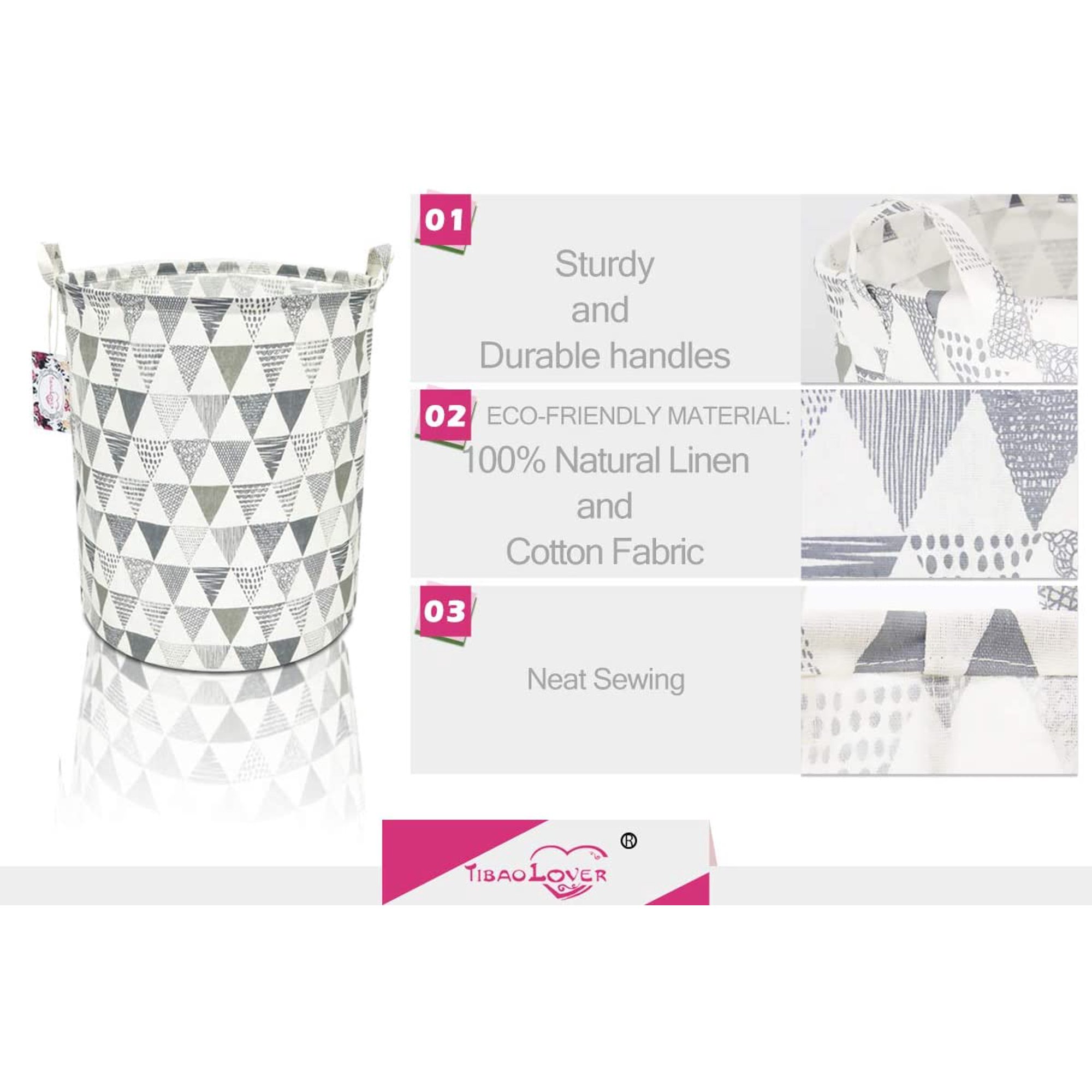 19 7 Large Sized Waterproof Foldable Canvas Laundry Hamper Bucket With Handles For Storage Bin Kids Room Home Organizer Nursery Storage Baby Hamper Triangle Pattern Grey Walmart Canada